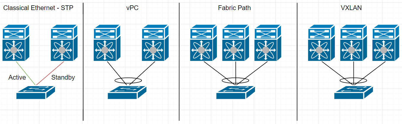 - FabricPath - L2 only and there is no active control plane (legacy now, because of VXLAN)