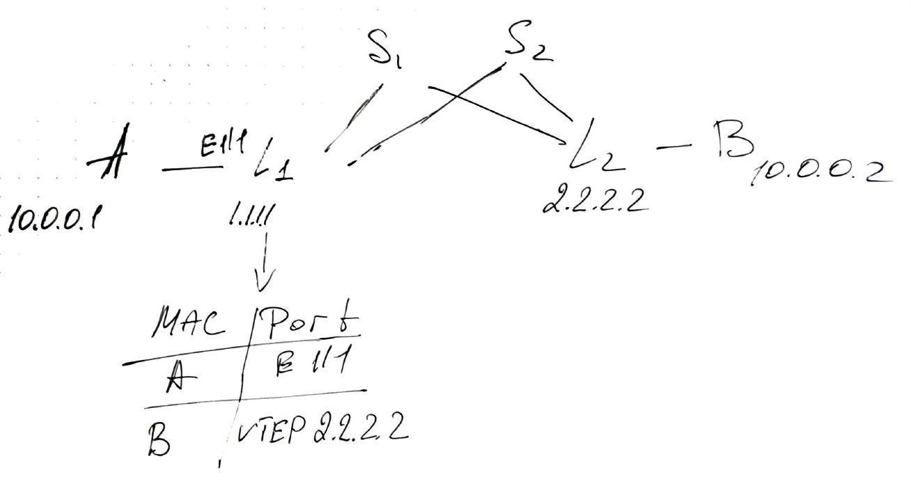 - uses layer 3 ECMP over CLOS fabric (like FabricPath)