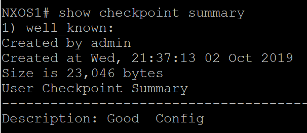 - NX-OS has checkpoints - save well known working config before the maintenance window start. Two types: