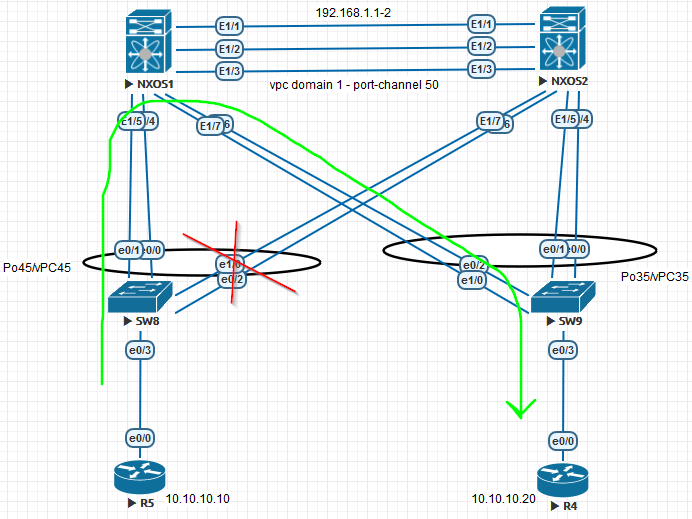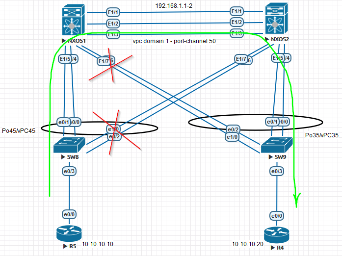 The link between SW8 and NXOS2 is down: