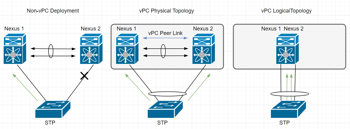 - Frames received on the vPC Peer link can not flood out a vPC Member Port while original vPC Peer has active vPC Members in the same vPC