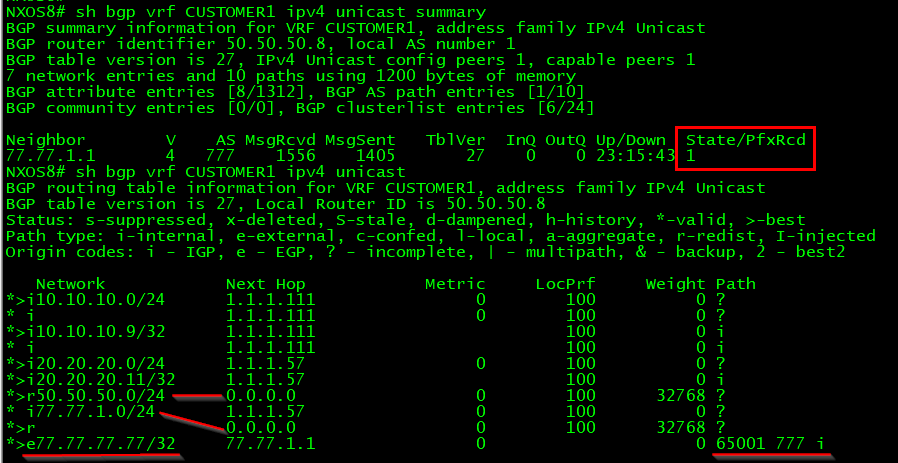 Note: Cisco made import of the VPNv4 prefixes from L2VPN EVPN into unicast implicit, so there is no “advertise l2vpn evpn” command under BGP vrf configuration, which was in NXOS v7 - it happens automatically.