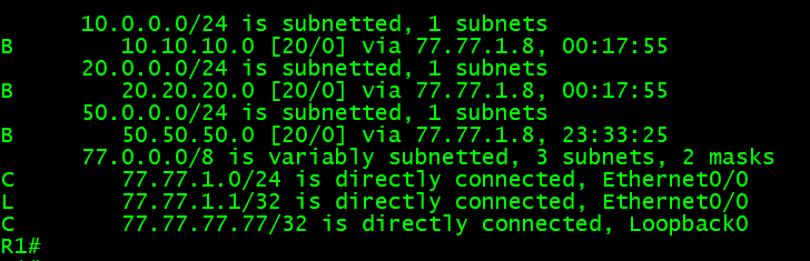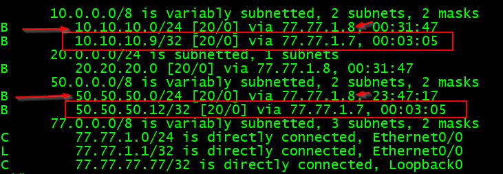 network 77.77.77.77 mask 255.255.255.255