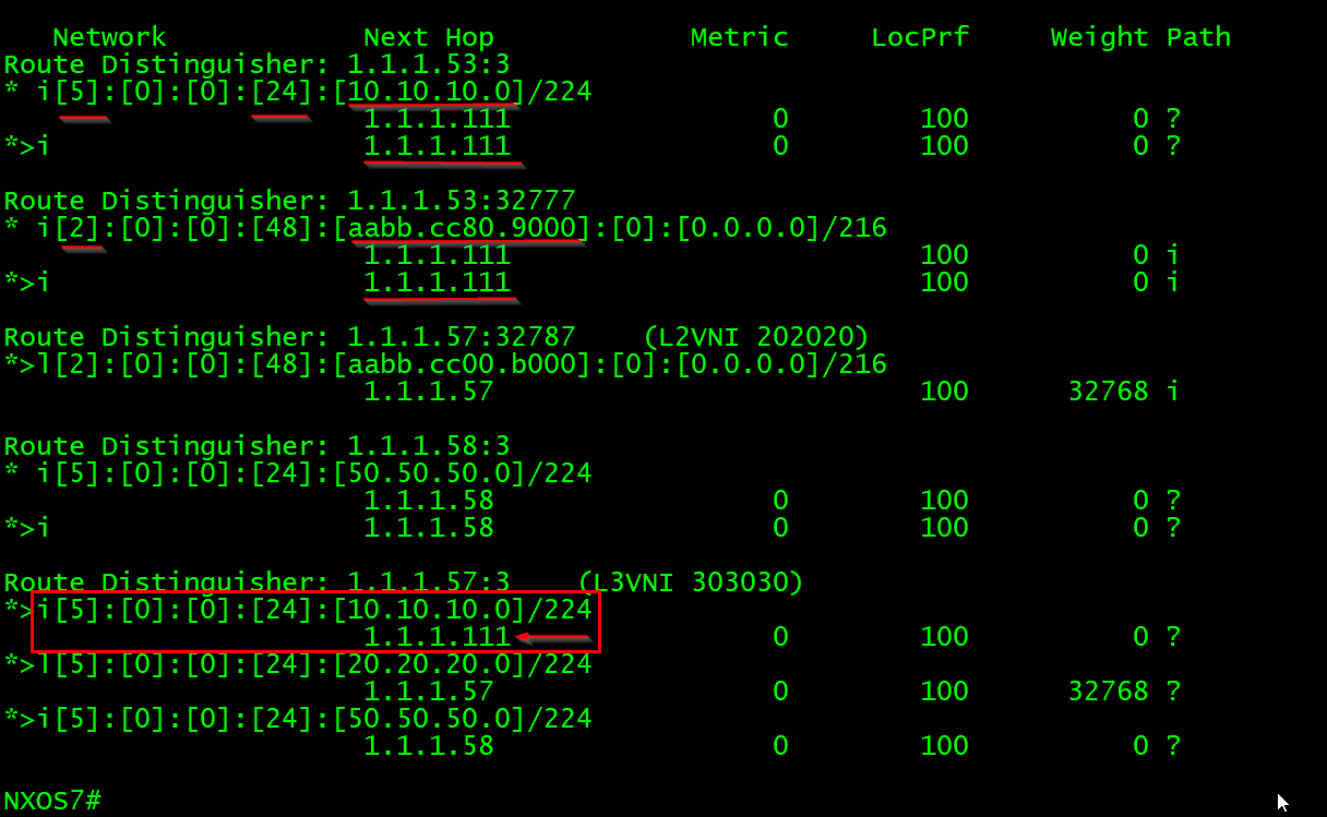 From the Spines (NXOS1 and NXOS2) and another leaf (NXOS7)