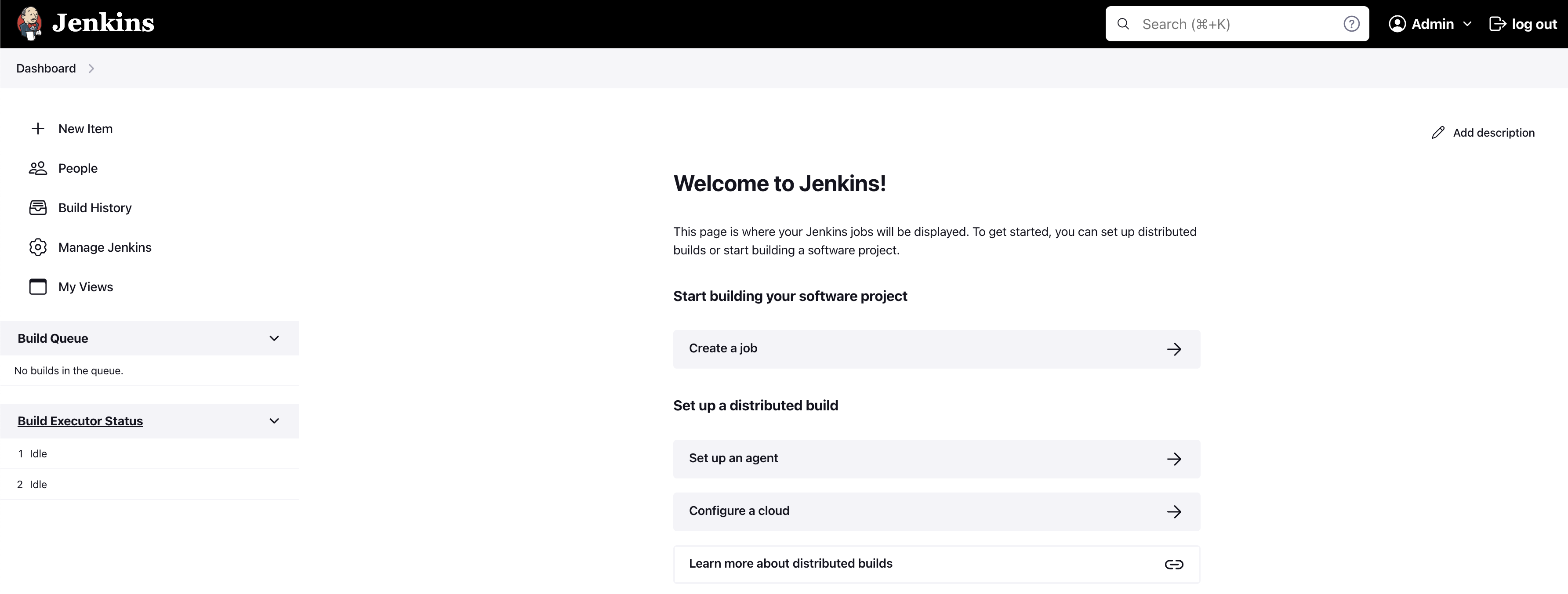 Jenkins initial setup is required. An admin user has been created and a password generated.
