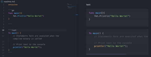 I just discovered that we can add syntax highlighting to the markdown file. Very nice! ``` code```