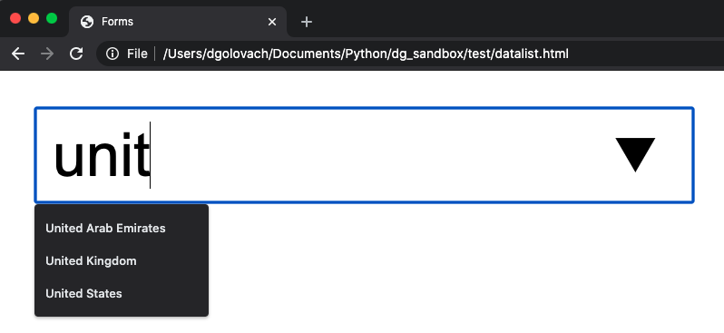 <input name="country" list="countries" placeholder="Country">